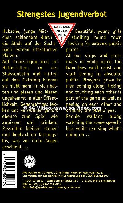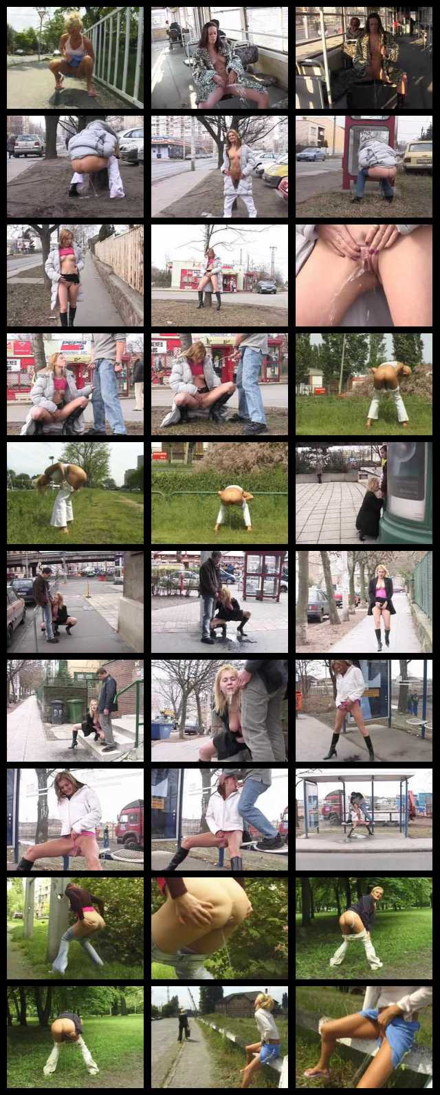 Красивые девушки, разгуливая по городу, выискивают более открытые и людные места для писсинга. На автобусной остановке, на пересечении дорог или при поездке на трамвае, они так входят в азарт, что не могут себя сдержать и мочатся на глазах у публики. В фильме собрана подборка писсинг сюжетов, с различными девушками в разную пору года. Когда на улице холодно они накидывают шубку на голое тело, ну а летом удобнее писять когда под юбкой нет трусиков. А чтобы шокировать прохожих на все 100% в кадре появляются парни. Девушки делают им публичный минет и принимают струю мочи из члена в рот.